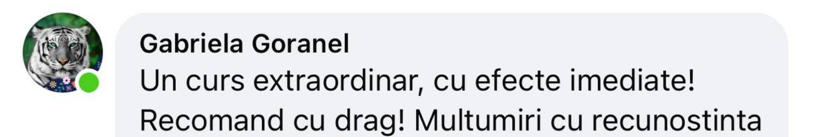 In urma work shopului Elibereaza-te, am experimentat bucurie, plans SI eliberari in zona stomacului SI umerilor, a fost intens,iar la final am simtit o usurare SI fericire. Multumesc, SI cu siguranta voi revenii cu drag!