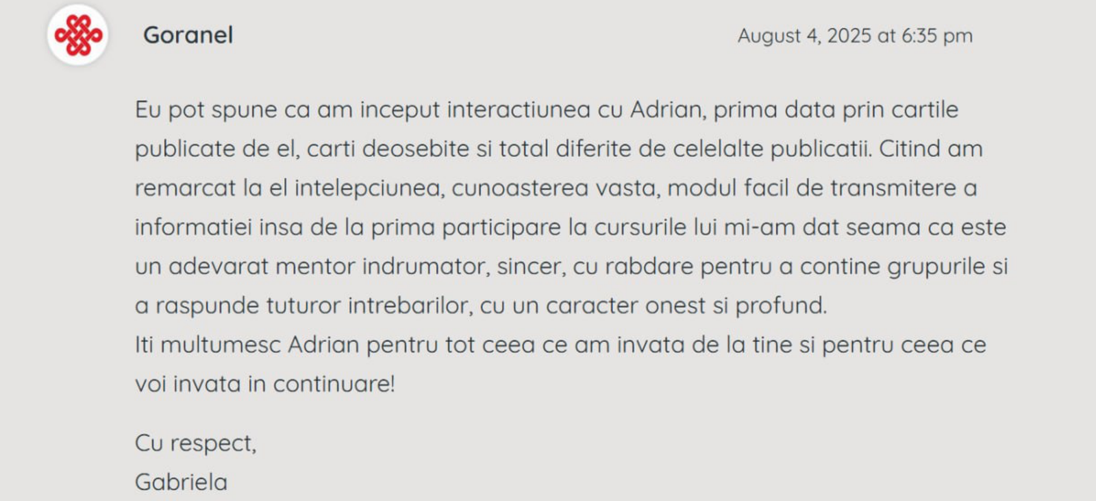 Ca de fiecare data o intalnire magica, cu invataminte si imputerniciri, o energie unica, frumoasa si calda! Multumesc inca o data Adrian❤️!