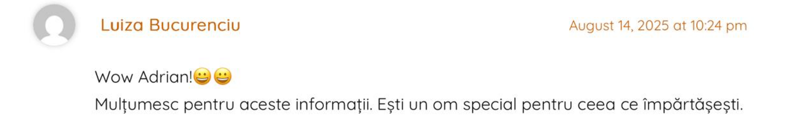 Ca intotdeauna ghidarea lui Adrian este deosebita, informatiile si explicatiile sunt clare.
